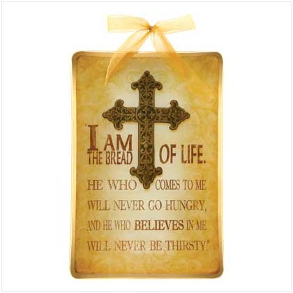 Have just a little faith- and put it the place everyone can see! Lustrous glass plate makes a hanging addition to any wall, proudly putting a treasured Bible statement on display. Beautiful burnished colors add richness to any décor. Ribbon on high for hanging. Weight 2.2 lbs. 8 1/4" x 3/4" x 12 1/2" high. Glass..