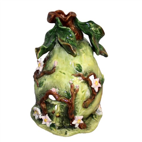 Pear wrapped in vines and flora.Multiple light outlet openings.Ceramic pineapple enclosed tea gentle package.7" H x 4-1/2" W.Hand painted. This charming pear tea light holder is eclectic fashionable and can slot in neatly to simply about any residence. It portions 7" H x 4-1/2" W and has a wide sufficient opening that it constructs it simple to insert a lit tea gentle with out issue. This ceramic candle container has been sparsely hand painted giving it an artsy feel. With vibrant bold colours and colors of inexperienced, crimson and brown this pear has been accentuated together with small yellow and crimson vegetation in expanding to twisting vines and leaves. Light holes have been placed during the fruit allowing the candle gentle to build dancing light samples on your partitions giving your accommodation a beautiful dwellingy feel when this tea mild container is lit at night. This pear builds a sexy present or present on yourself..